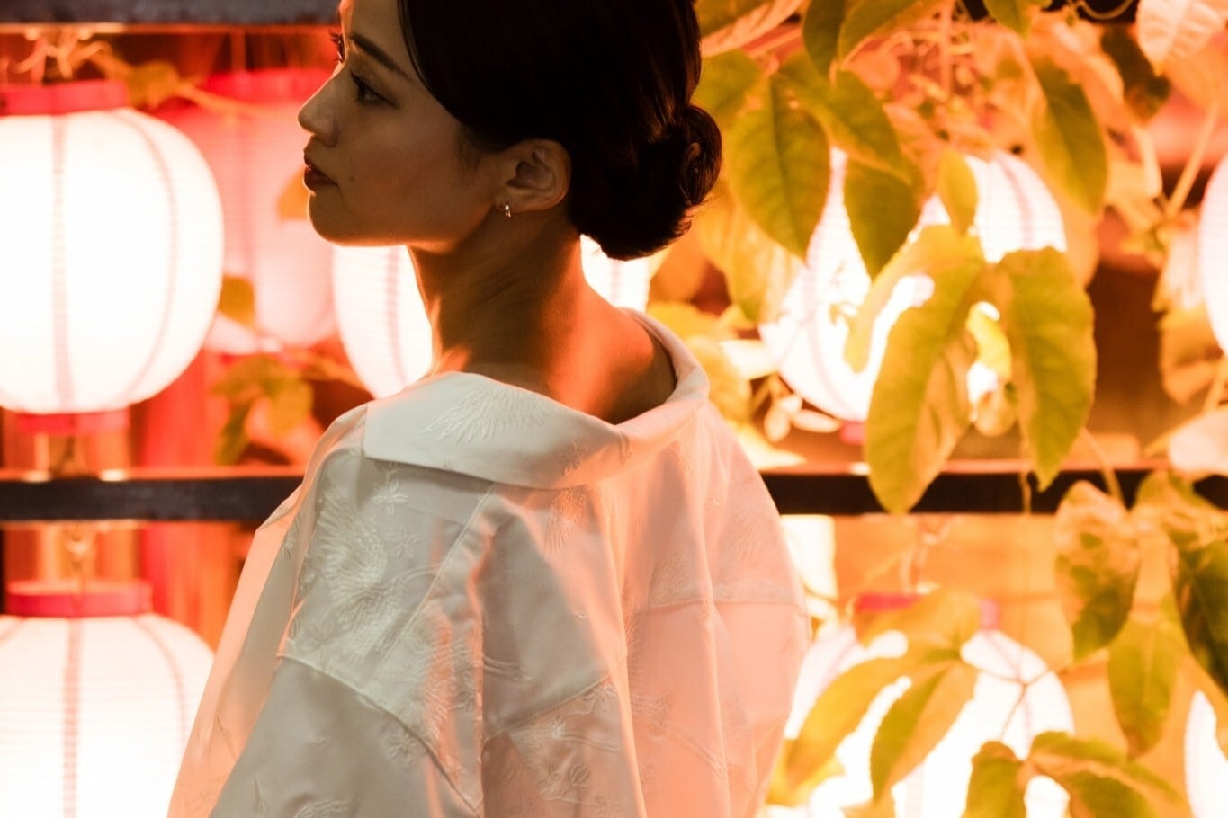 ▶シルクタッチの合繊素材に贅沢に総柄刺繍を施したエクスクルーシブなオリジナル生地となっております